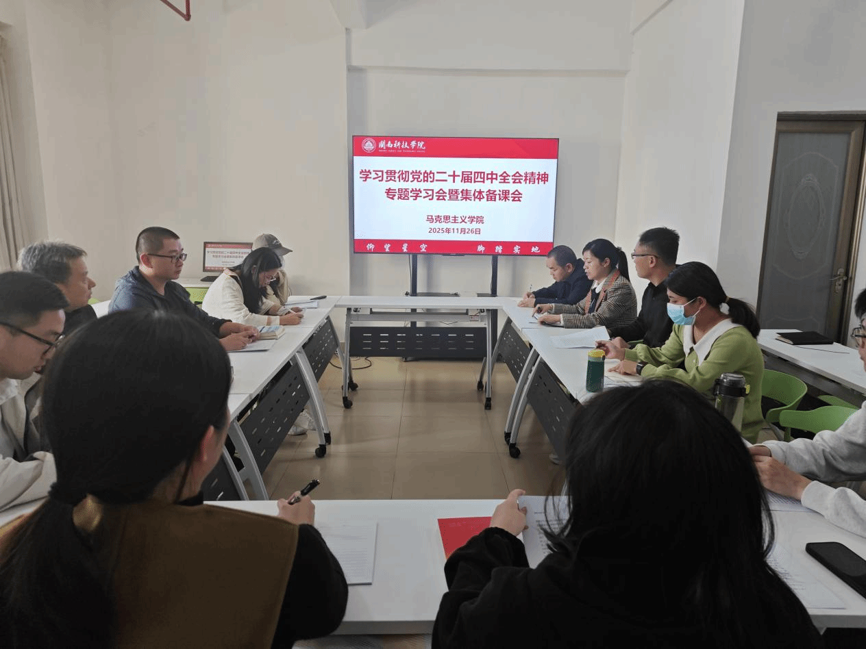 为深入学习贯彻党的二十届四中全会精神,持续推动党的创新理论进教材、进课堂、进头脑,扎实推进思想政治理论课改革创新,11月26日,马克思主义学院开展学习贯彻党的二十届四中全会精神专题学习会暨集体备课会。会议由学院党支部书记、副院长林雪珍主持,全体党员参会,校宣传部部长陈范武出席会议。