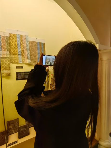 展厅内,网络工程专业学生在“侨批”展柜前驻足良久。这些泛黄的“信汇合一”家书,不仅是亲情纽带,更是一套跨越重洋的原始“通信系统”。他们讨论着其中信息编码、传递路径与安全机制,从中看到了技术如何承载最深沉的人类情感。而在南洋商埠场景复原区,广告学专业学生则细致分析着早期华侨商铺的招牌、票据与广告画,探寻在陌生文化环境中构建身份认同与商业信任的视觉叙事策略。