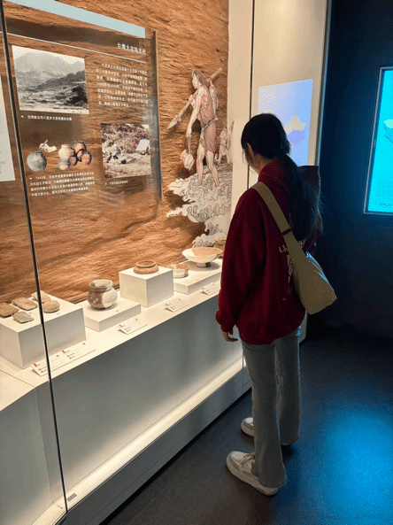 步入庄严肃穆的展厅,同学们瞬间被浓厚的历史氛围所包围。在“远古家园”“血脉相亲”“文脉相承”等主题展区,一件件珍贵的文物、一幅幅详实的图片、一幕幕复原的场景,仿佛跨越时空的纽带,清晰诉说着闽台两地情缘。从相同的民间信仰到共有的民俗节庆,从一样的方言乡音到交融的戏曲艺术,全方位、多角度呈现出的历史画卷,让同学们从历史与法理事实的角度深刻理解台湾从来就是中国领土不可分割的一部分,深切体会到中华文化是维系两岸同胞情感的精神纽带。