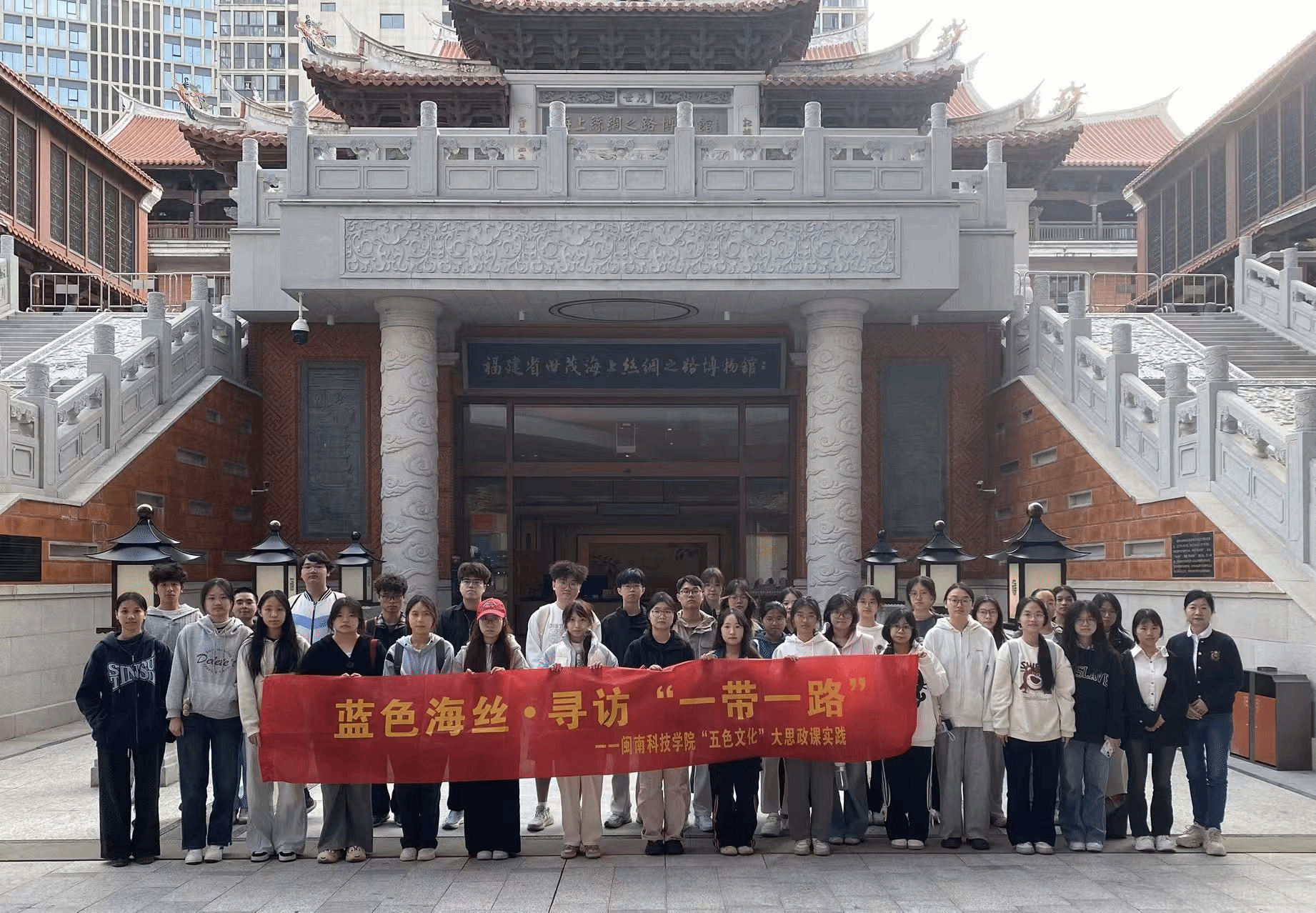 为深化“大思政课”实践育人成效,引导师生从海丝之路看古今传承,我院林雪珍老师于12月3日组织人文学院2024级汉语言文学专业部分学生前往福建省泉州市世茂海上丝绸之路博物馆,开展以“五色文化实践-蓝色海丝·寻访‘一带一路’”为主题的思想政治课实践教学活动。